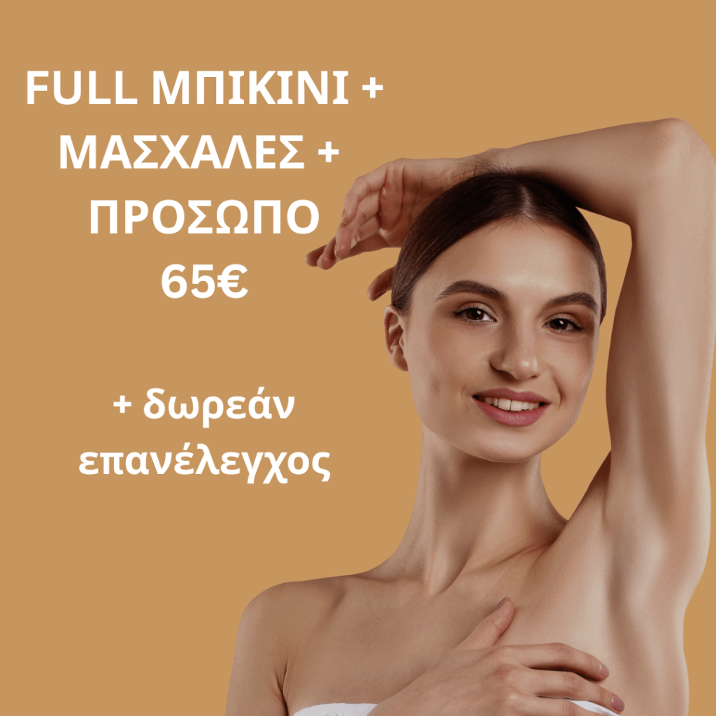 Φοιτητικό Full Body Γυναικείο (Πόδια + Full Μπικίνι + Μασχάλες + Χέρια + Full Πρόσωπο)